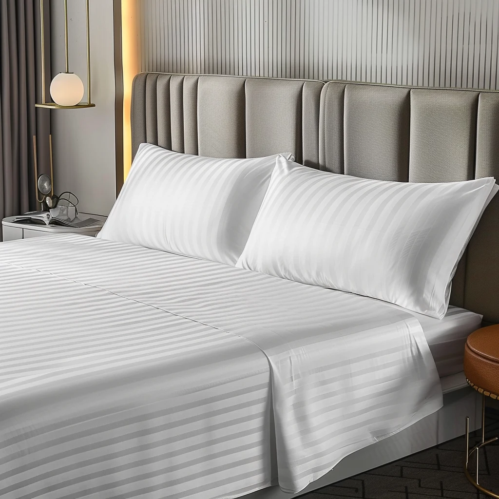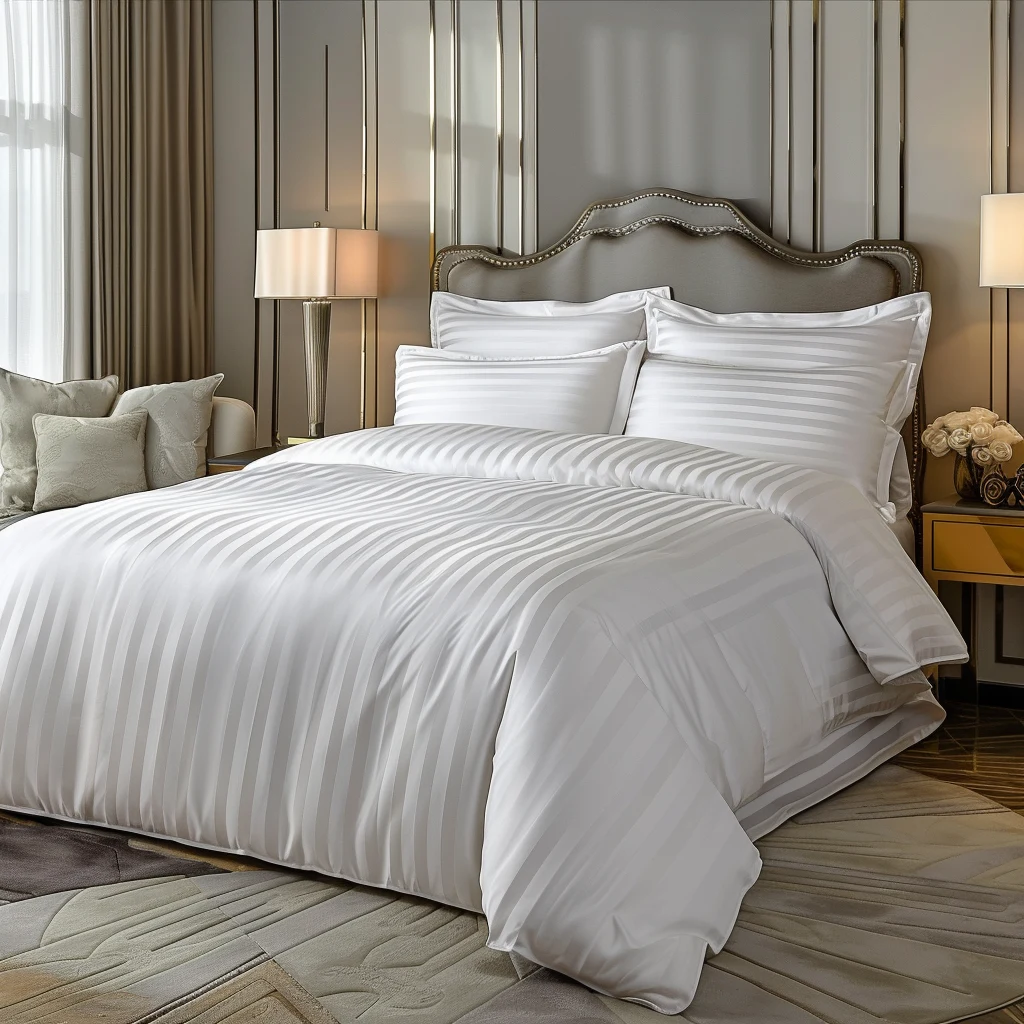 Damast Stripe posteljina izrađena je od 100% pamuka s elegantnim, u tkanje utkanim prugama koje prostoru daju profinjen hotelski izgled. Zahvaljujući prirodnom materijalu, posteljina je prozračna, mekana i ugodna za kožu, idealna za svakodnevnu upotrebu. Visokokvalitetni damast omogućuje dugotrajnost i zadržavanje izgleda čak i nakon učestalog pranja.