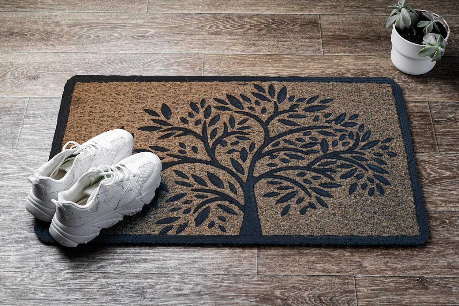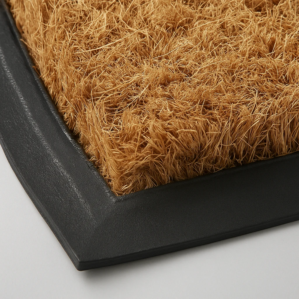 RBCMM otirač izrađen je od prirodnih kokosovih vlakana (coir) na vrhu, idealnih za učinkovito čišćenje obuće, dok donja strana ima gumiranu protukliznu podlogu koja sprječava pomicanje. Otporan na vlagu, prljavštinu i habanje, pogodan je za ulaze, hodnike i natkrivene vanjske prostore.